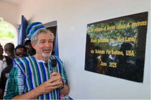 Dr. Ken Lans, who has been involved with SfS from its earliest days, helped turn children’s drawings from Maforeka into cards that raised initial funds for the first school. He also helped open the NGOs first bank account, assisted with grant applications, and helped design the initial website. He later helped fund the Madina Primary School in the Falaba district and, in 2025, contributed to the construction of a Senior Secondary School in Koromasilaia, providing students from 14 surrounding communities, the opportunity to continue their education.