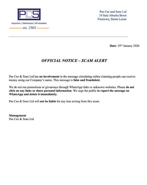 The alert comes amid a growing wave of online impersonation and digital fraud schemes targeting well-known companies in Sierra Leone. Cybercriminals often exploit trusted corporate brands to trick unsuspecting members of the public into revealing sensitive personal and financial information.
