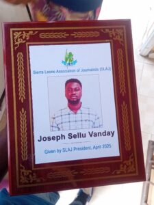 The Sierra Leone Association of Journalists (SLAJ) has honoured Joseph Sellu Vanday with a Distinction Award for Innovation, recognising his remarkable contributions and transformative work in public health for the year 2024.